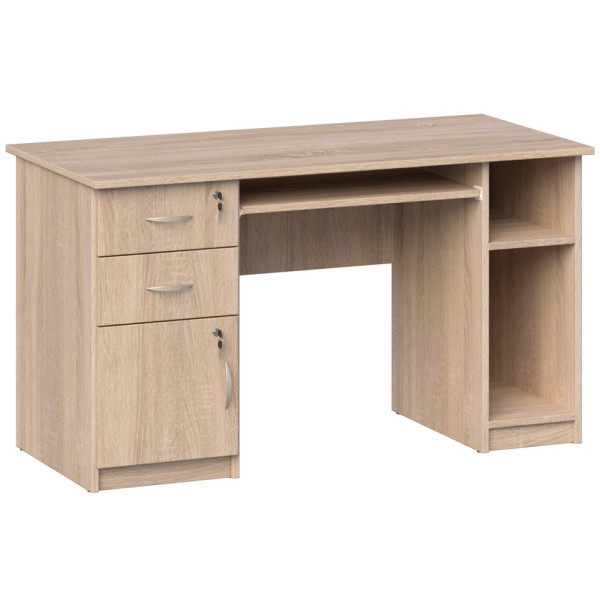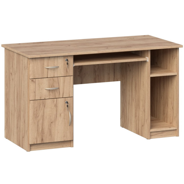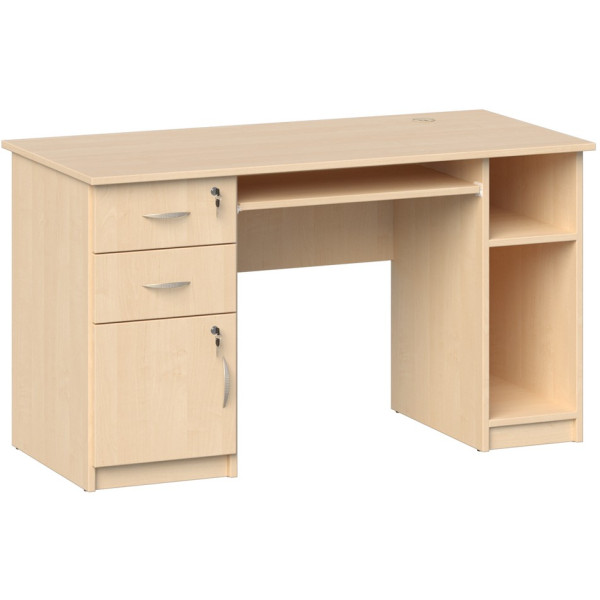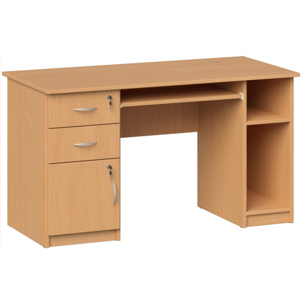 Biurko z jednej strony posiada dwie szuflady ( górna zamykana na zamek z 2 kluczami) oraz szafkę zamykaną na zamek z 2 kluczami. Szerokość tej szafki to 368 mm.