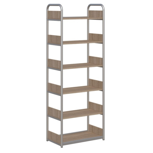 Regał biblioteczny A jednostronny z bokami z płyty, rama metalowa