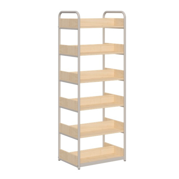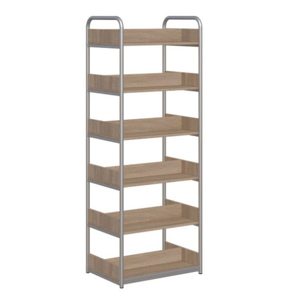 Regał biblioteczny B dwustronny z bokami z płyty, rama metalowa
