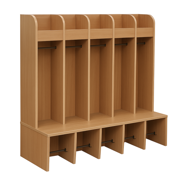 Regał szatniowy z płyty meblowej z górną i dolną półka na buty - otwarty