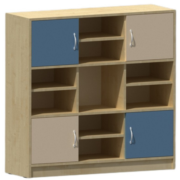 - regał 9-skrytkowy, 5 przestrzeni otwartych, wym. szer. 1182 mm, gł. 380 mm, wys. 1160 mm