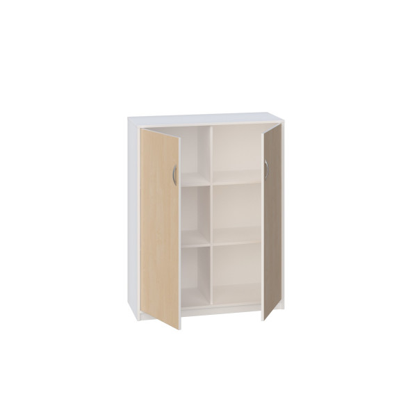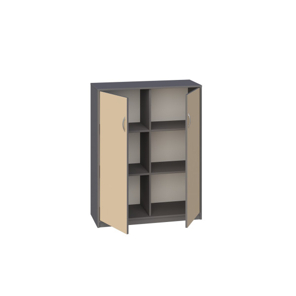 Posiada 1 przegrodę i 4 półki, które tworzą 6 dużych przestrzeni do przechowywania, zamykane parą drzwi bez zamka.
